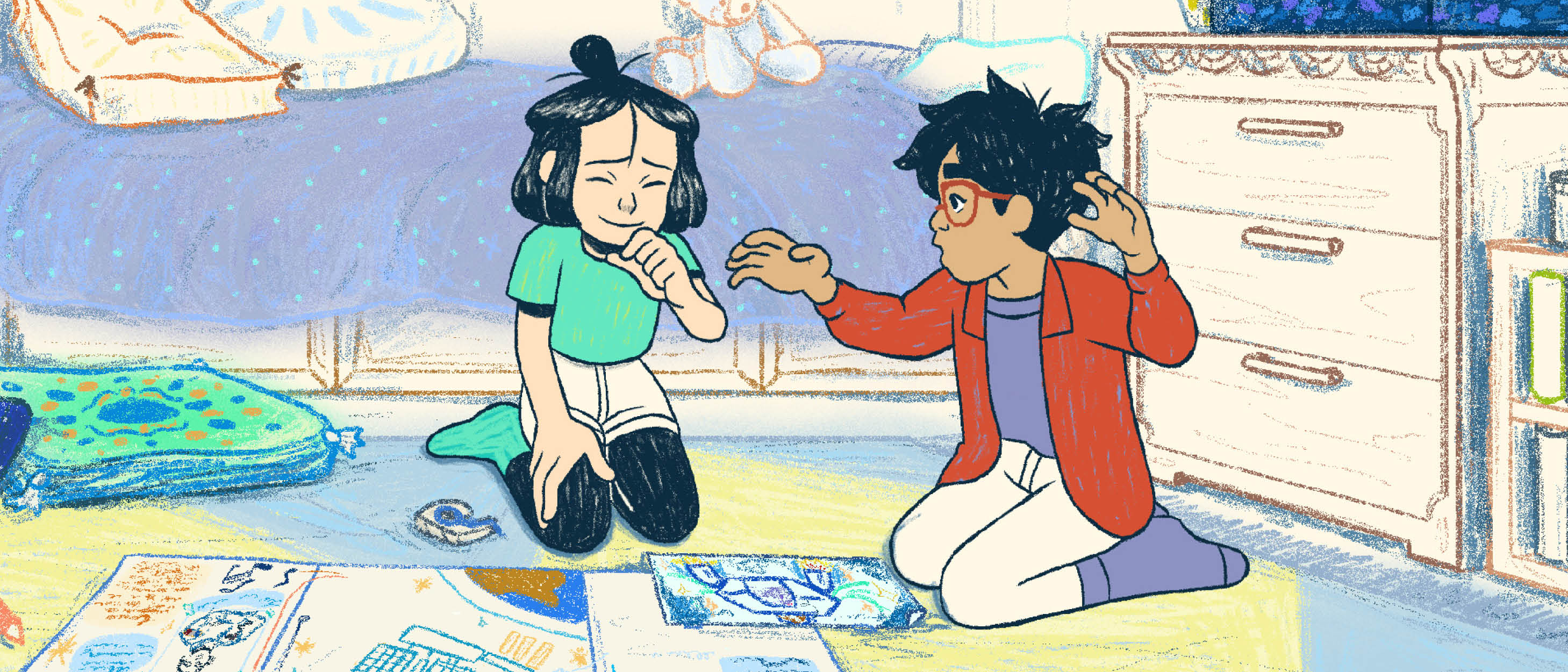 Les Astres immobiles // Chenghua is 9 years old and has to prepare a presentation on space with her best friend. She can't find the time she needs, as her parents are constantly asking her to translate for them. Chenghua's parents don't speak French and are so dependent on their child that they don't realize they're putting too much weight on her shoulders. Chenghua can't take it anymore, and is looking to break away from her family. Her desire for space and her natural enthusiasm will help her take the plunge.