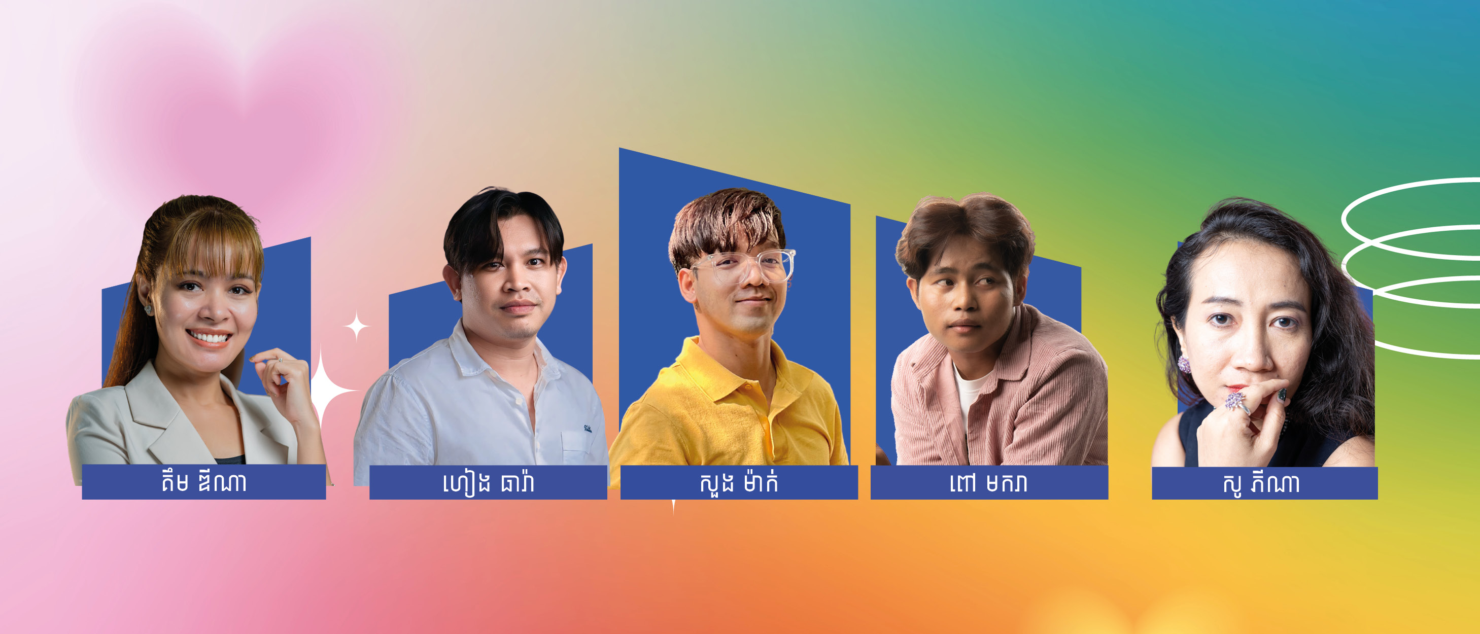 រួមមានអ្នកនិពន្ធ សូ ភីណា មកពី "កម្ពុមេរា" អ្នកនិពន្ធ សួង ម៉ាក់ មកពី "ចត្វាប៊ុក្ស" អ្នកនិពន្ធ គឹម ឌីណា (ហាណា) មកពី