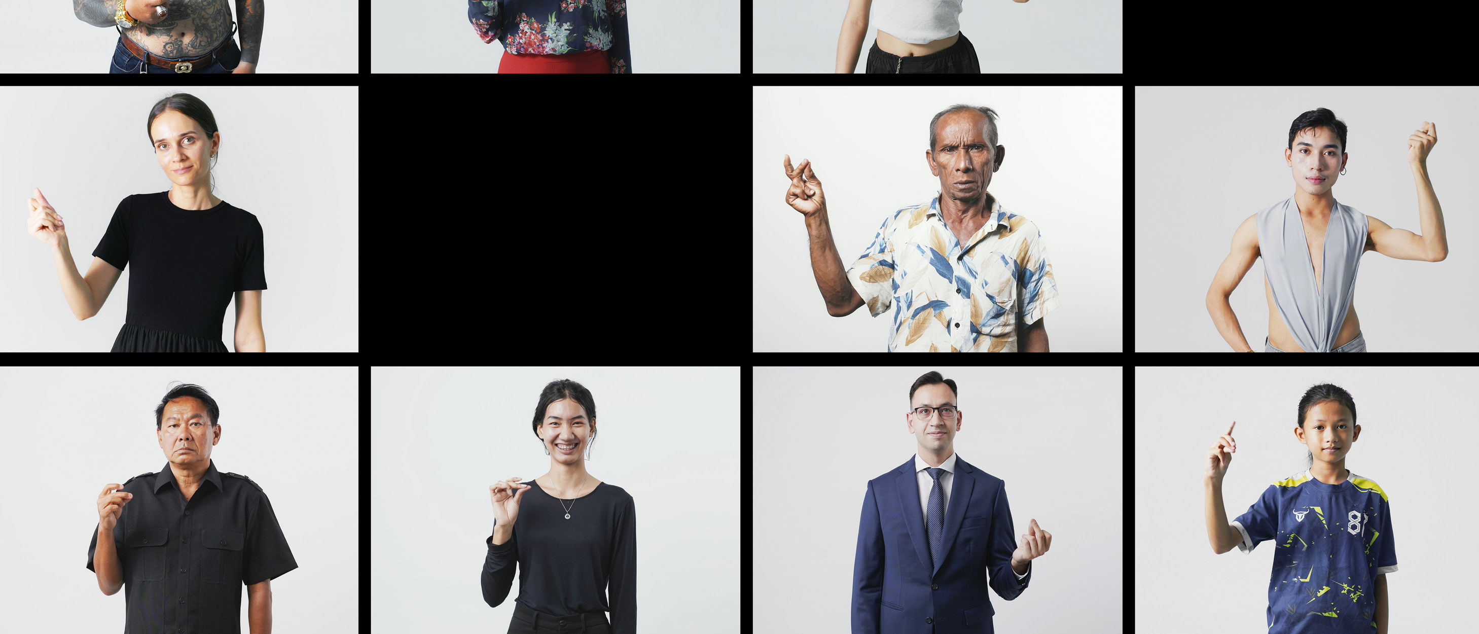 Cette série de portraits vidéo présente un éventail d'individus d'une diversité intrigante, et Snap Dance capture des danseurs allant du ballet au hip-hop. Les danseurs évoluent sans musique, le spectateur n'entend que leurs pas, leur respiration, le bruissement de leurs costumes et, bien sûr, le claquement de leurs doigts. Conçue et réalisée au Cambodge, cette œuvre est un retour aux origines minimalistes de l'artiste, et réinvente son installation emblématique Snapping (1981), initialement créée en Belgique, en Suède et en Thaïlande, en la revisitant à travers le prisme de la danse contemporaine.