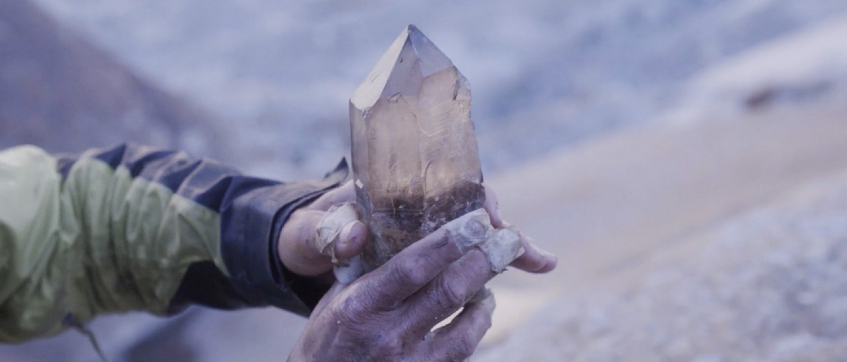 Sur le massif du Mont Blanc, un cristallier trouve un quartz. Le minéral passe ensuite entre les mains de géophysicien·ne·s,