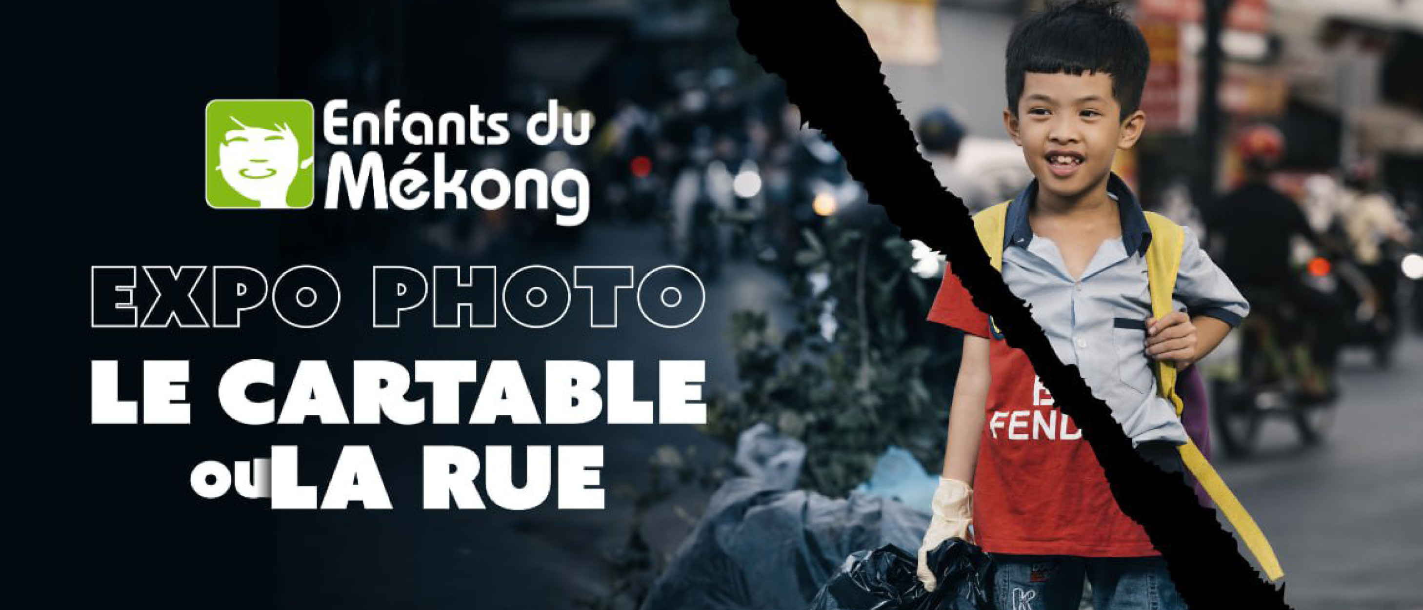L'exposition "Le Cartable ou la Rue" d'Enfants du Mékong révèle le bras de fer pour aller à l'école, pour les enfants travailleurs en Asie du Sud-Est. À travers 22 diptyques, elle confronte leur quotidien de travail difficile à la promesse de l'école. Chaque portrait est enrichi d'un podcast audio pour donner une voix et une émotion à ces histoires de résilience. Le parrainage scolaire est présenté comme un levier crucial pour leur offrir une meilleure éducation et un avenir.