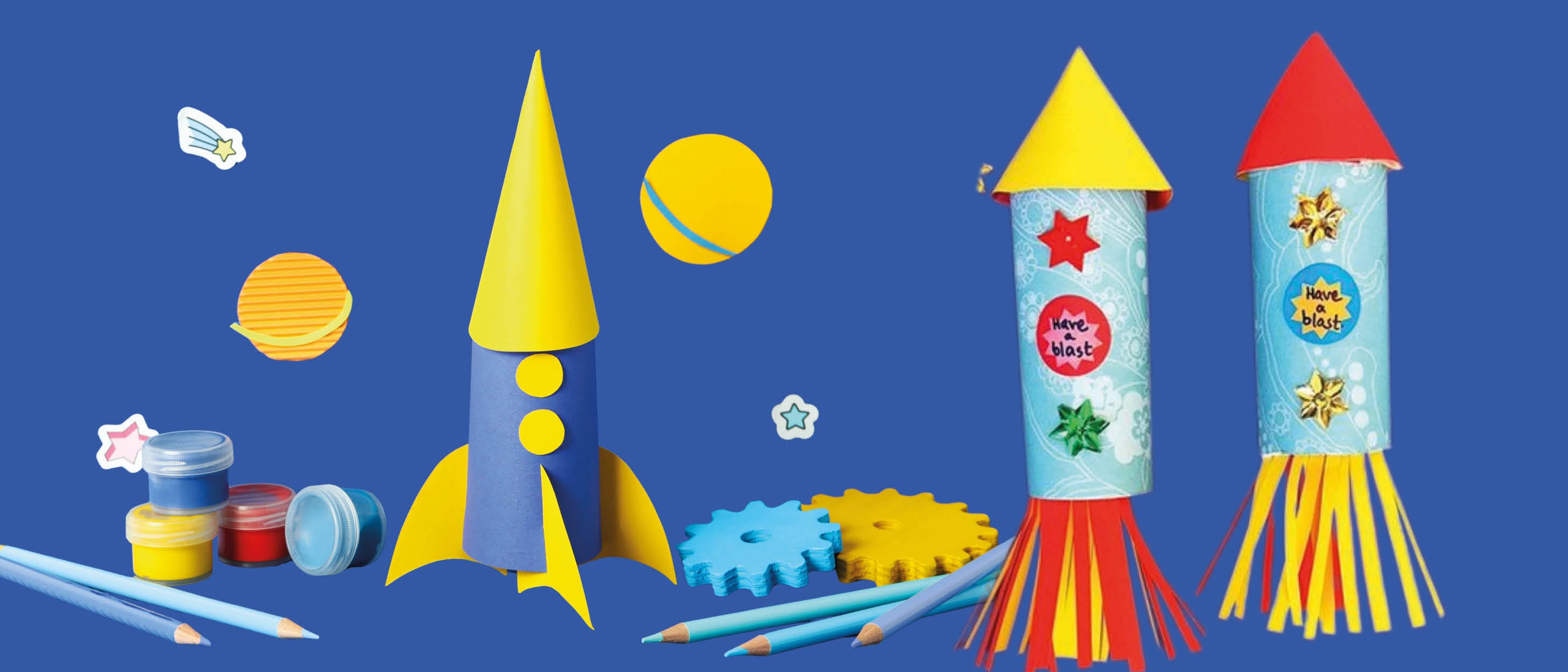 réalisent une fusée en papier coloré, la décorent selon leur imagination, puis la lancent grâce à un élastique pour la voir s’envoler.Par