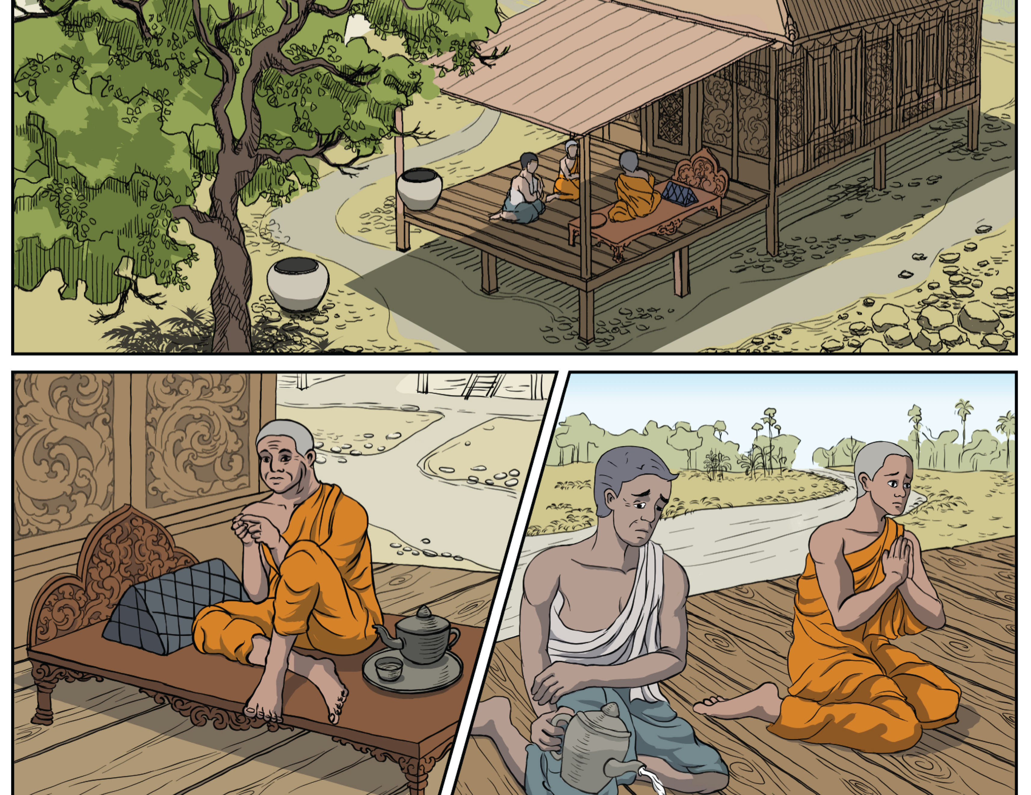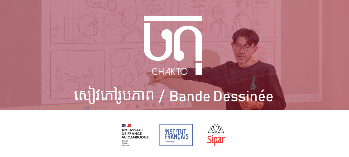 នៅក្នុងក្របខណ្ឌនៃគម្រោងនេះ សិល្បករកម្ពុជាវ័យក្មេងត្រូវបានជ្រើសរើសឱ្យឆ្លងកាត់កម្មវិធីបណ្តុះបណ្តាលយ៉ាងយកចិត្តទុកដាក់ ដឹកនាំដោយគ្រូបង្ហាត់ជនជាតិបារាំង និងជាអ្នកគូរគំនូរឆាករូបភាពដ៏ល្បីលំដាប់អន្តរជាតិពីររូប។ តាមរយៈសិក្ខាសាលាសរសេរតែងនិពន្ធ និងគំនូរយ៉ាងយកចិត្តទុកដាក់ អ្នកចូលរួមអាចអភិវឌ្ឍជំនាញបច្ចេកទេសរបស់ពួកគេ ដោយជំរុញការច្នៃប្រឌិតរបស់ពួកគេ។ គោលដៅ? ដើម្បីពង្រឹងជំនាញសិល្បៈរបស់ពួកគេ និងផ្តល់ឱ្យពួកគេនូវឧបករណ៍នានា ដើម្បីអនុវត្តគម្រោងអាជីពប្រកបដោយមហិច្ឆតា។ បន្ទាប់មក អ្នកចូលរួមនឹងចាប់ផ្តើមឈានចូលដំណាក់កាលផលិតសៀវភៅរឿងឆាករូបភាពផ្ទាល់ខ្លួនរបស់ពួកគេ ដែលការបោះពុម្ភផ្សាយស្នាដៃទាំងនេះ នឹងក្លាយជាជំហានដ៏សំខាន់ក្នុងការអភិវឌ្ឍរឿងនិទានបែបឆាករូបភាពនៅប្រទេសកម្ពុជា។